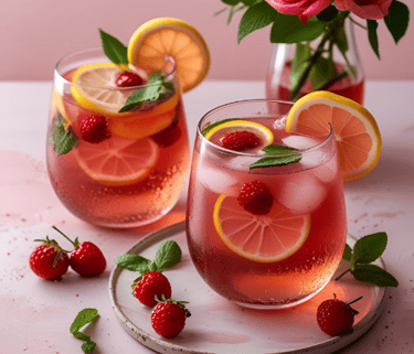 Ripe red raspberry with juicy peach undertones. Perfect for any summer party punch bowl.